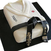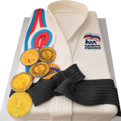 • торт дзюдоисту в форме кимоно с поясом, надписью с иероглифами или медалью;