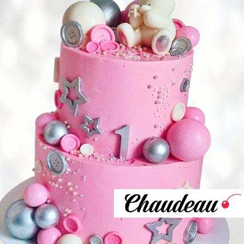 Торт двухъярусный розовый с мишкой TDRM013561